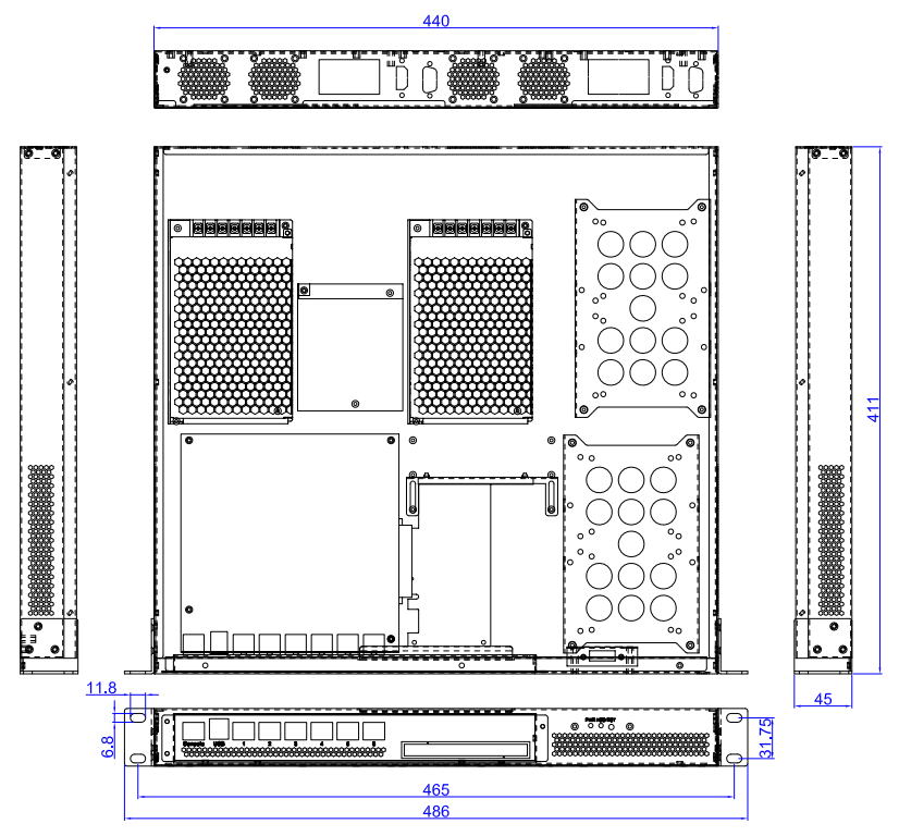 2 x 4020系統風扇, 1 x 電源開關, 1 x VGA接口 |