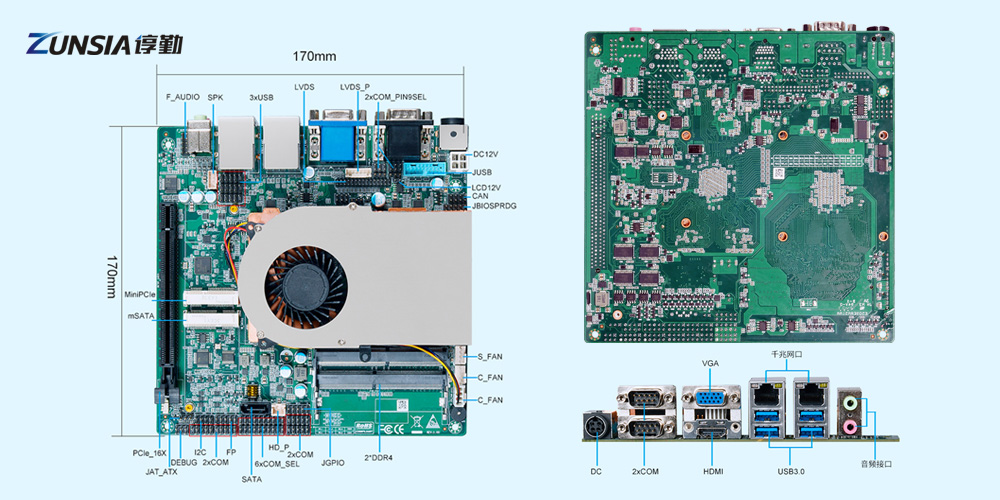 存儲方面有1個mSATA和1個SATA3.0接口,顯示方面有1個HDMI、1個VGA和1個LVDS/eDP(2選1)接口;豐富的工業(yè)接口,有PCIe X16、MiniPCIe、LAN、COM、GPIO、CAN等。可以連接各種電力設(shè)備,如傳感器、控制器、數(shù)據(jù)采集設(shè)備等,實現(xiàn)對電力設(shè)備的監(jiān)測與控制、存儲采集到的電力數(shù)據(jù),以便后續(xù)分析和處理。